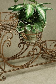 Bu, üreticilerin stand tasarımı için kullandığı en yaygın malzemedir. Dövme stand özellikle güzel ve prezentabl görünüyor. Çiçekçi, güçlü ve kararlı olduğu için çiçeklerle 12 saksıya kadar bir metal yapı üzerine yerleştirebilecek.