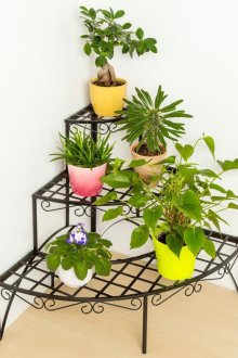 - Plakaların çapı ve sayıları. İlk önce yapıya hangi iç mekan bitkilerini kuracağınıza karar verin. Çaplarını ölçün. Stand genişse, üzerine küçük bir tencere sığacaktır, ancak tam tersine, yerleştirilmesiyle ilgili bir sorun olabilir. Bu parametreleri dikkate alarak seçiminizi yapın.