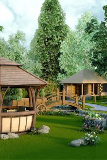 Sitenin topraklarında (en fazla 10 dönümlük) bile binalar, çiçek tarhları, meyve bitkileri ve yataklar için bir yer tahsis edilmelidir. Hepsi birbirlerini uyumlu bir şekilde tamamlamalıdır.