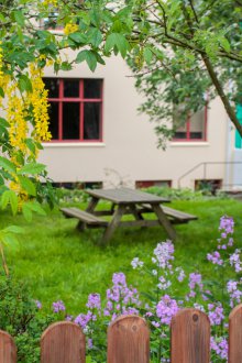 Orta kısım bir rekreasyon alanı ve bir bahçe kısmı (sera, yataklar) değildir. Bölge boyunca dar yollar boyunca küçük çiçek yatakları yerleştirebilirsiniz.
