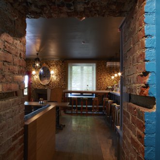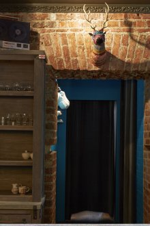 Çatı katı estetiği, sökme işleminden sonra bulunan ve temizlemeye ve ayrılmaya karar verdikleri çok dokulu tuğla duvarlar tarafından eklenir.