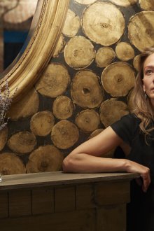 Lambalar-kayaklar, kitap rafları, örme geyik bizi sahibinin hobilerine gönderiyor gibi görünüyor, ama biraz ironi ile.