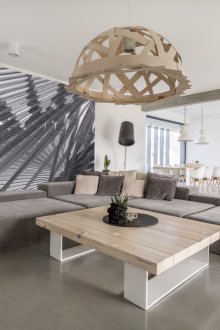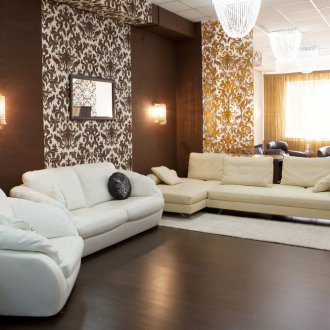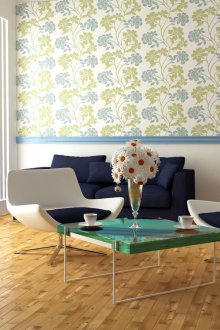 Genellikle baskın duvar, büyük desenli parlak duvar kağıdı veya parlak ve zıt desenli fotoğraf duvar kağıdı ile yapıştırılır. Duvarların geri kalanı sakin tonlarda duvar kağıtları ile kaplanmıştır. Tavanın bir kısmına duvar kağıdı çizerek oda hacmini verebilirsiniz.Tasarımın cazibe görünmesini sağlayacak zıt duvar kağıdı ile bir niş veya çıkıntı yapıştırılabilir ve oturma odasında hafif ve rahat bir atmosfer hüküm sürecektir.