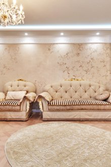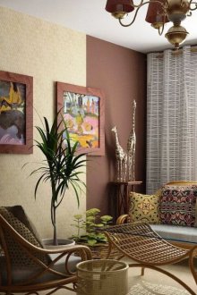 - oturma odasının tasarımı üzerinde düşünerek, bir üreticinin duvar kağıdını ve en iyisi - bir katalogdan seçilmesi önerilir;