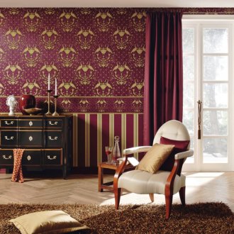 Örneğin, açık çizgiler olarak, pastel renklerde yapılmış bir desene sahip krem duvar kağıtları mükemmel ve koyu olanlar olarak - kadifemsi bir dokuya sahip siyah veya koyu gri duvar kağıtları.