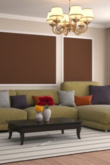 Ek parçalar için malzeme de geniş bir aralıktan seçilebilir. Kumaş parçaları, duvar resimleri, panoramalar, ahşap paneller ve diğer malzemeler oturma odasının tasarımını süsleyecek ve özel kesici uç formatı nedeniyle görsel reddetmeye neden olmayacaklar.