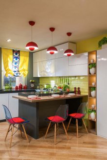 Mutfağın tasarımını düşünmek ve lamba seçmek, odanın birkaç bölgeye ayrılması gerekir: bir dinlenme alanı, bir çalışma alanı ve bir depolama alanı. Pişirme alanı daha parlak aydınlatılmalıdır.